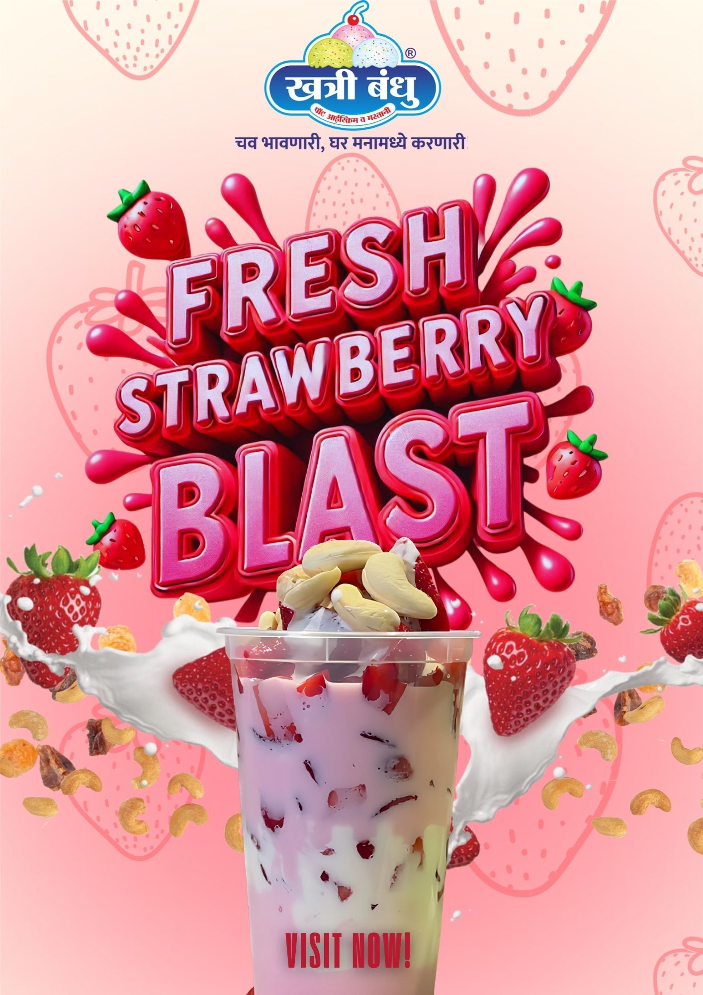 Winter in Pune has its own charm — cool breeze, cozy evenings, and the arrival of juicy, fresh strawberries! 🍓 And what better way to celebrate the season than with Khatri Bandhu’s Fresh Strawberry Blast — a delicious fusion of creamy milk, fresh fruit, and indulgent ice cream.